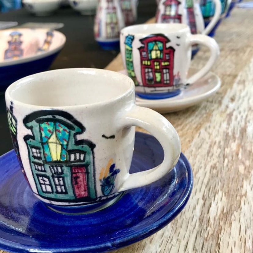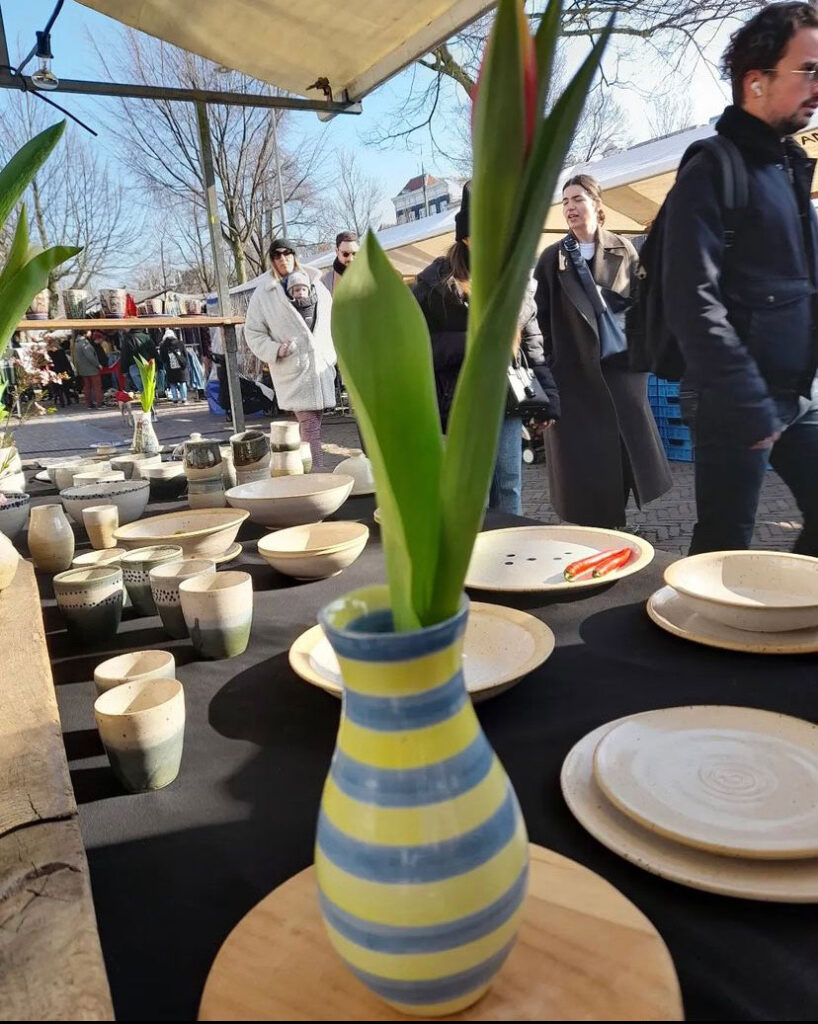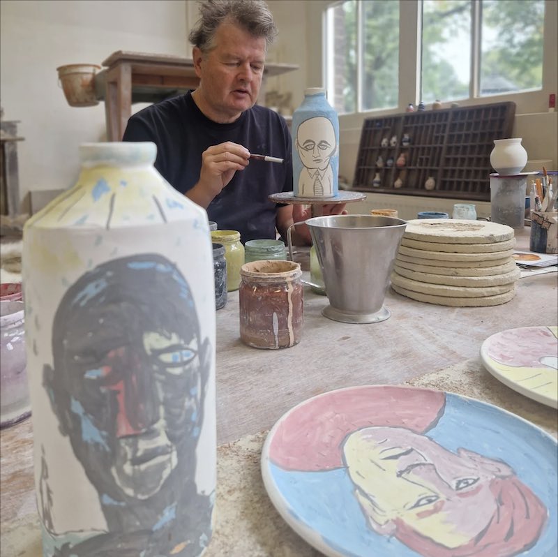 De veelzijdige theaterschrijver en beeldend kunstenaar Don Duyns (@donduyns) bracht een inspirerend bezoek aan mijn atelier in Amsterdam. Daar beschilderde hij met zijn kenmerkende stijl mijn handgemaakte keramiek — een ontmoeting tussen theater, beeldende kunst en ambacht.